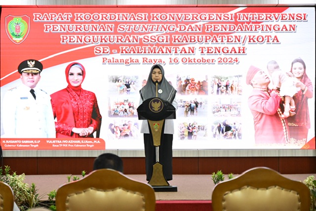 MMCKalteng - Palangka Raya - Asisten Perekonomian dan Pembangunan (Ekbang) Sri Widanarni mewakili Gubernur Kalteng membuka secara resmi Rapat Koordinasi Konvergensi Intervensi Penurunan Stunting dan Pendampingan Pengukuran SSGI Kabupaten/ Kota se-Kalteng, bertempat di Aula Jayang Tingang LT. 1 Kantor Gubernur Kalteng, Rabu (16/10/2024).