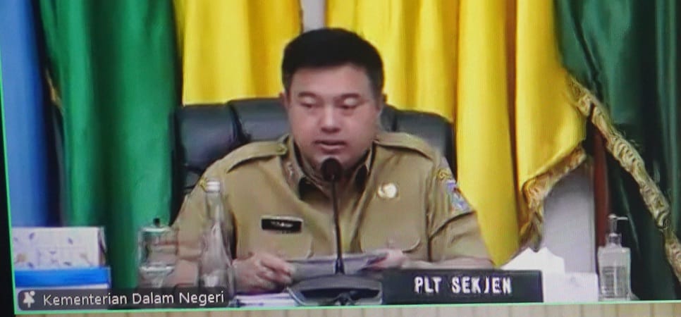 MMCKalteng - Palangka Raya - Staf Ahli (Sahli) Gubernur Bidang Ekonomi, Keuangan dan Pembangunan Yuas Elko hadiri Rapat Koordinasi (Rakor) Pengendalian Inflasi Daerah secara virtual, di Ruang Rapat Bajakah Kantor Gubernur Kalteng, Senin (21/10/2024). Rakor dipimpin oleh Plt Sekjen Kemendagri Tomsi Tohir.