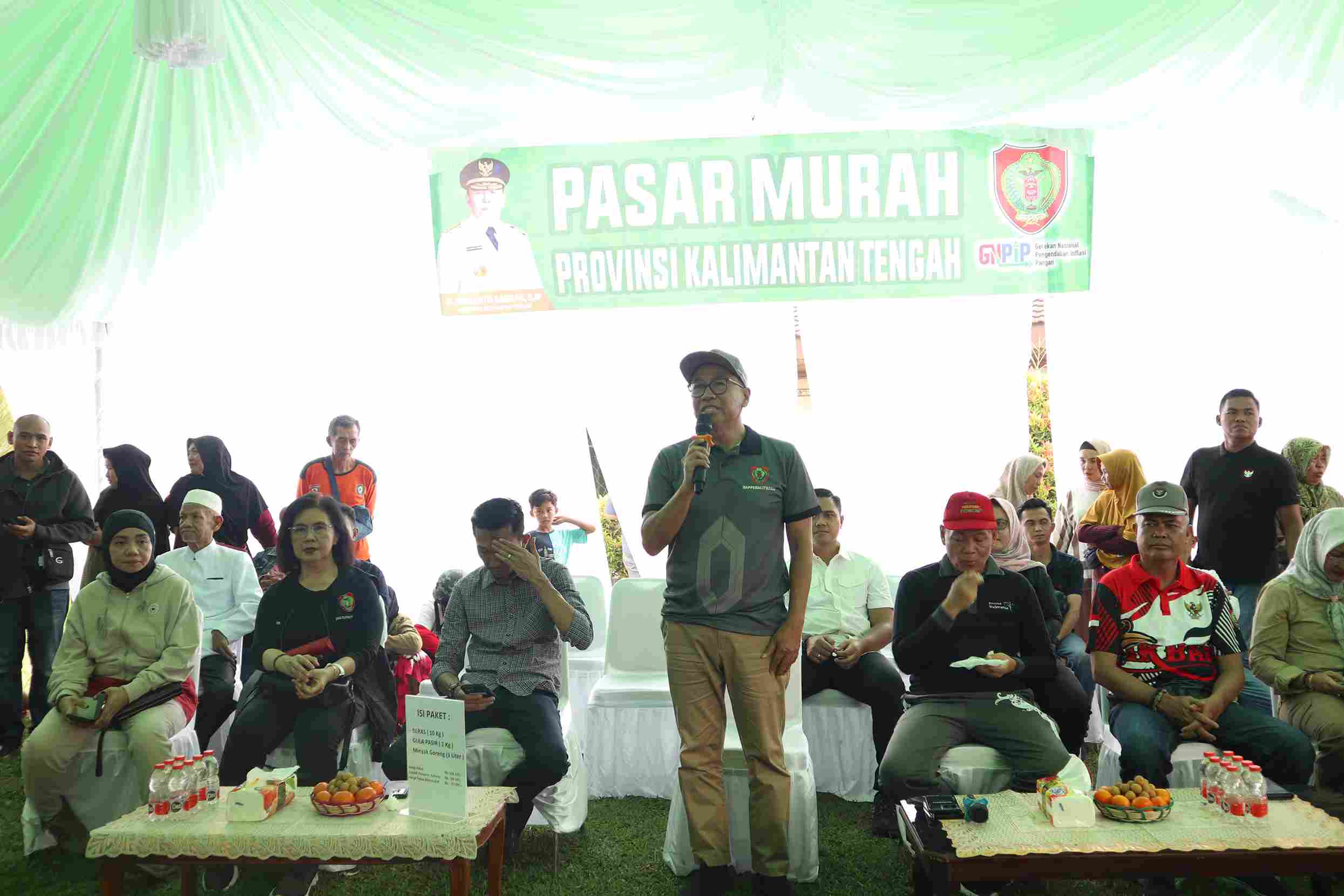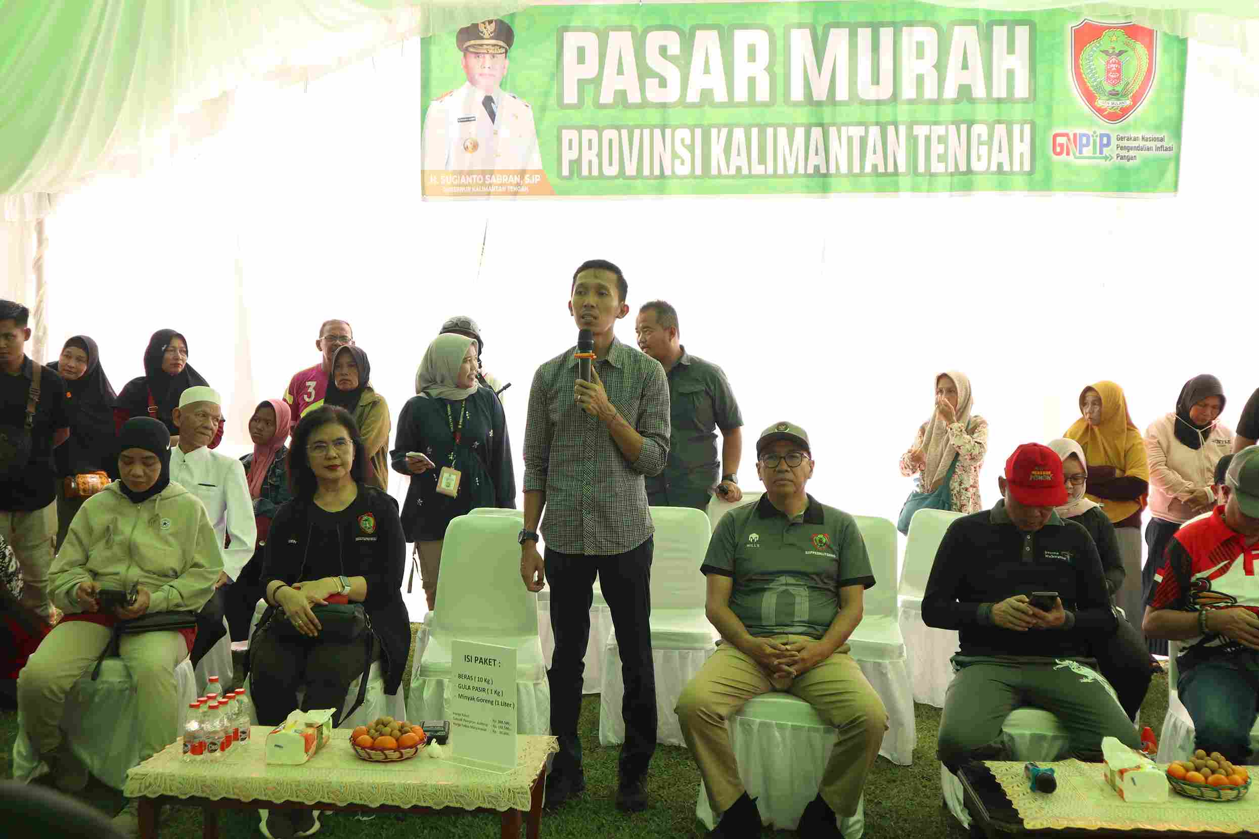 Diinformasikan pula, pada kegiatan pasar murah ini paket sembako yang tersedia terdiri dari beras 10 kg, gula 1 kg dan minyak goreng 1 liter dengan nilai sebesar Rp208.500,- per paket, kemudian disubsidi oleh Pemerintah Provinsi sebesar Rp188.500,- sehingga masyarakat hanya menebus sebesar Rp20.000,- per paketnya.