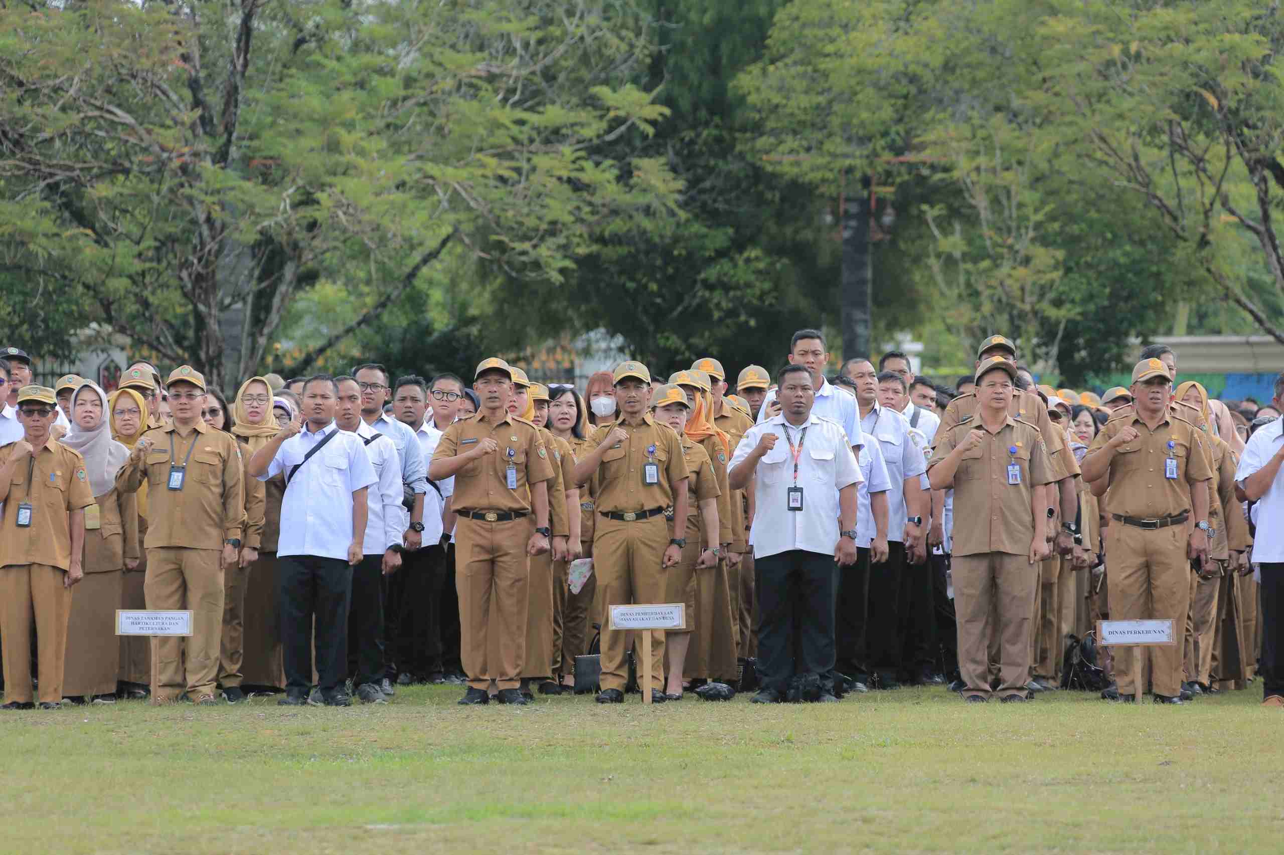 MMCKalteng - Palangka Raya - Seluruh pegawai lingkup Dinas Pemberdayaan Masyarakat dan Desa (PMD) Provinsi Kalimantan Tengah mengikuti Apel Besar lingkup Pemerintah Provinsi Kalimantan Tengah, bertempat di Halaman Kantor Gubernur Kalteng, Selasa (8/4/2025).