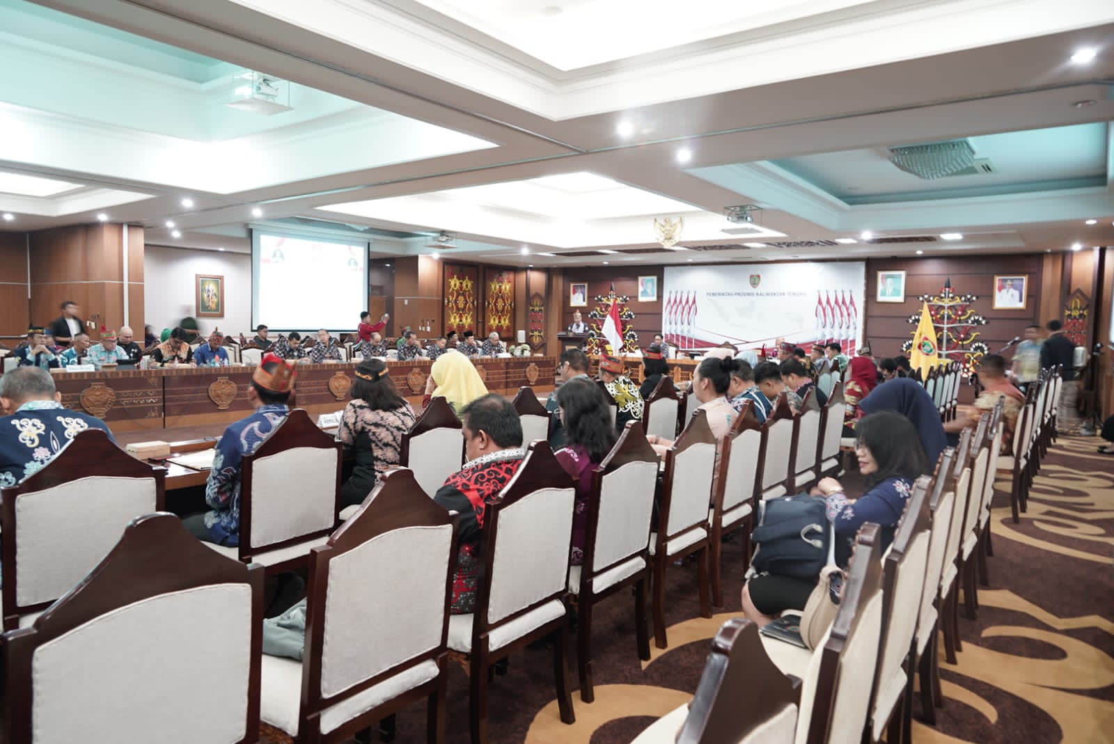 MMCKalteng - Palangka Raya - Plt Sekretaris Daerah (Sekda) Kalteng Leonard S Ampung pimpin Audiensi Penyampaian Atensi Hasil Pengawasan Badan Pengawasan Keuangan dan Pembangunan (BPKP), di Aula Eka Hapakat, Kantor Gubernur Kalteng, Kamis (24/4/2025).