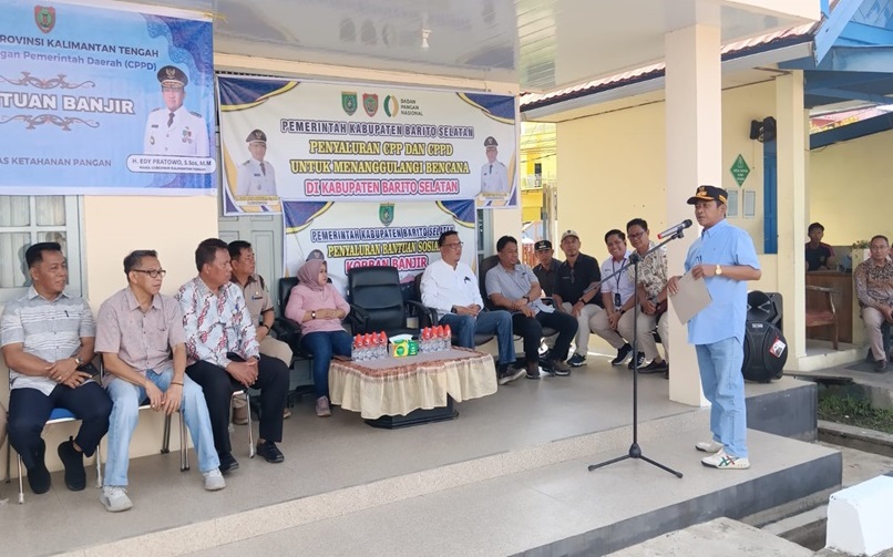 Dalam sambutannya, Wakil Bupati Barsel mengatakan, banjir yang melanda wilayah Kabupaten Barsel telah memberikan dampak bagi masyarakat baik secara sosial dan ekonomi. Oleh karena itu, Pemerintah Kabupaten (Pemkab) Barsel melalui Dinas Sosial Kabupaten Barito Selatan dan Dinas Ketahanan Pangan dan Pertanian Kabupaten Barito Selatan memberikan bantuan sosial dalam bentuk paket sembako untuk meringankan beban masyarakat yang terdampak.