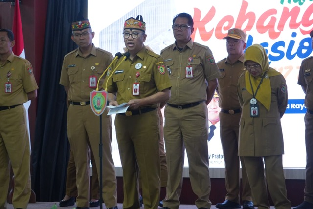 MMCKalteng - Palangka Raya - Plt. Sekretaris Daerah Provinsi Kalimantan Tengah (Prov. Kalteng) Leonard S. Ampung, menyampaikan sosialisasi mengenai visi misi Gubernur Kalteng serta program prioritas pembangunan daerah dalam rangka mendukung Asta Cita Presiden RI. Hal tersebut disampaikan Leo dalam arahannya pada Upacara Peringatan ke-117 Hari Kebangkitan Nasional Tahun 2025 di lingkungan Sekretariat Daerah Prov. Kalteng, yang berlangsung di Aula Jayang Tingang (AJT), Kantor Gubernur Kalteng, Selasa (20/05/2025).
