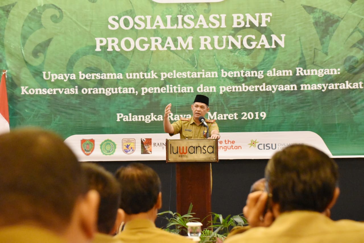 MMCKalteng – Palangka Raya - Borneo Nature Foundation (BNF) gelar sosialisasi BNF Program Rungan dengan tema "Upaya Bersama Untuk Pelestarian Bentang Alam Rungan Melalui Kegiatan Penelitian, Konservasi Orang Utan dan Pemberdayaan Masyarakat", bertempat di Luwansa hotel, Selasa (5/3/2019).