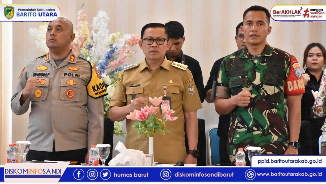 Rakor dihadiri oleh Panglima Kodam XII/Tanjungpura (TPR), Mayjen TNI Jamalullael, Kapolda Kalimantan Tengah Irjen Pol. Iwan Kurniawan, jajaran kepala perangkat daerah Provinsi Kalimantan Tengah, serta unsur Forum Koordinasi Pimpinan Daerah (Forkopimda) Kabupaten Barito Utara. (Nadi Forester / BARUT - Foto: Diskominfobarut)/Edt:UL
