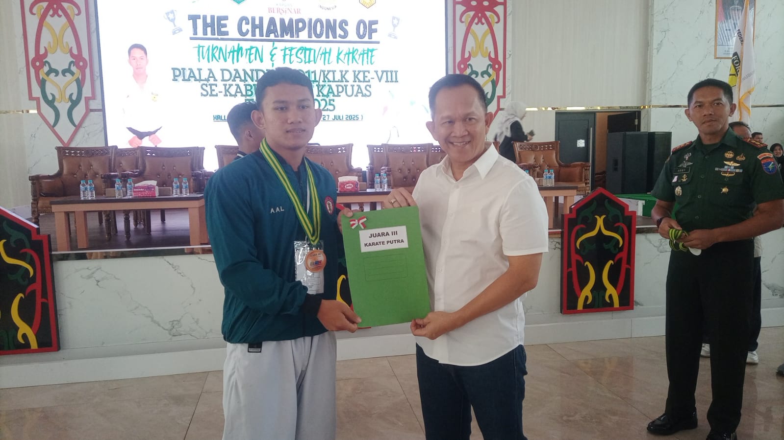 MMCKalteng - Kuala Kapuas - Staf Ahli (Sahli) Bupati Bidang Ekonomi, Keuangan, dan Pemerintahan (EKP) Kabupaten Kapuas, Septedy, menghadiri kegiatan Turnamen dan Festival Karate Piala Dandim 1011/Kuala Kapuas Ke-VIII tingkat Kabupaten Kapuas di Hall Rujab Bupati Kapuas, Jalan Jenderal Sudirman, Minggu (27/7/2025).