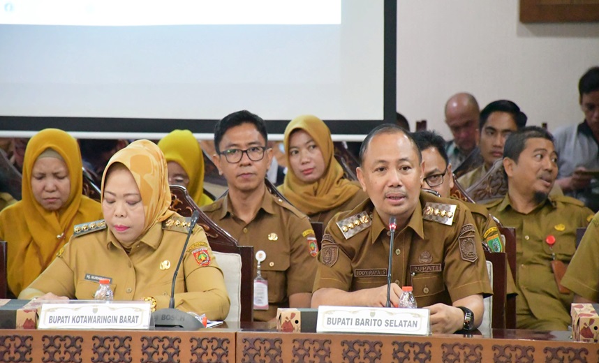 Dalam rapat tersebut, ada empat hal yang disampaikan Bupati Barito Selatan, diantaranya realisasi anggaran ± 28,11 persen, realisasi fisik sampai tanggal 30 Juni 28 persen lebih, refocusing sekitar Rp120 miliar, pelelangan dan lainnya sudah mencapai ± 61 persen atau 179 paket yang sudah tayang.