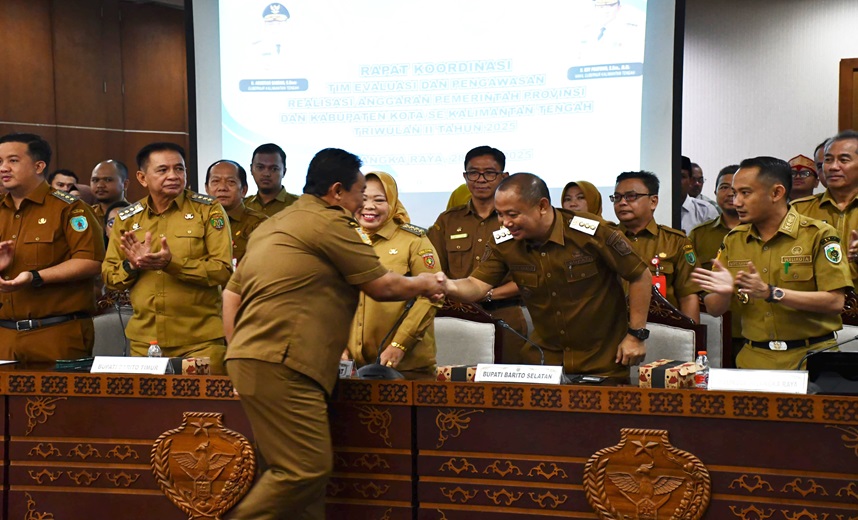 MMCKalteng - Palangka Raya - Bupati Barito Selatan, H. Eddy Raya Samsuri menghadiri Rapat Evaluasi dan Pengawasan Realisasi Anggaran (TEPRA) Triwulan II Tahun 2025 yang diselenggarakan oleh Pemerintah Provinsi (Pemprov) Kalimantan Tengah (Kalteng) di Aula Eka Hapakat Lantai 3, Kantor Gubernur Kalteng, Jalan RTA Milono No. 01 Palangka Raya, Senin (28/7/2025).