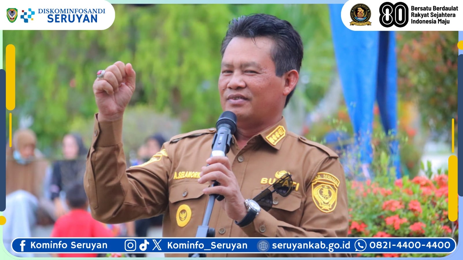 Dengan penuh optimisme, Bupati Seruyan menutup sambutannya dengan harapan besar agar Kabupaten Seruyan semakin maju, berdaya saing, dan mampu menghadapi tantangan zaman dengan keberanian serta kebersamaan.