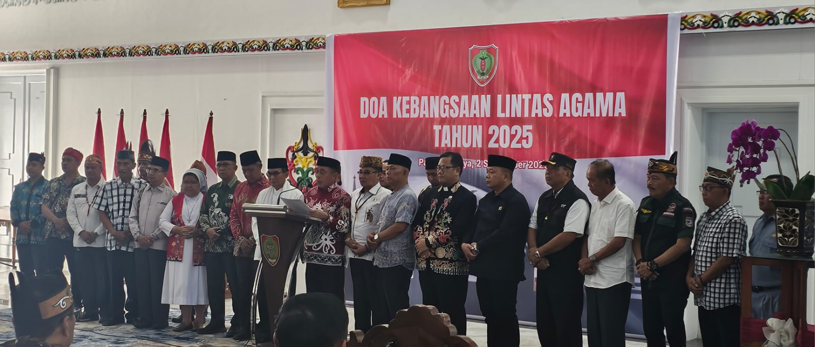 MMCKalteng - PALANGKA RAYA – Pemerintah Provinsi Kalimantan Tengah (Kalteng) yang didampingi dari Dinas Hanpang bersama-sama melaksanakan Doa Kebangsaan Lintas Agama pada 2025 sebagai ruang bersama untuk memperkuat semangat persatuan dan kesatuan di tengah kemajemukan masyarakat daerah ini. Kegiatan yang digelar di Palangka Raya pada hari Selasa dipimpin sejumlah tokoh agama yang secara bergantian membawakan doa menurut keyakinannya masing-masing, mulai dari Islam, Kristen Protestan, Katolik, hingga agama lain. Doa lintas agama ini turut dihadiri tokoh adat, tokoh pemuda, serta perwakilan organisasi perangkat daerah di lingkup pemerintah Prov.Kalteng, Selasa (02/09/2025).