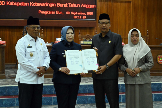 Rapat Paripurna ditutup dengan penandatanganan nota kesepakatan bersama KUA dan PPAS APBD 2026 oleh Bupati dan pimpinan DPRD Kobar.(prokom_rib)/Edt:UL