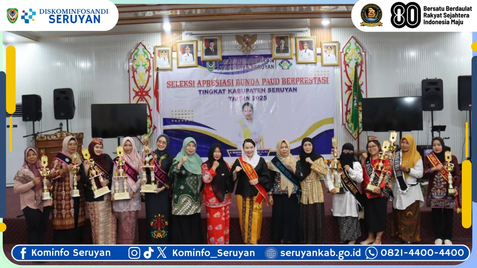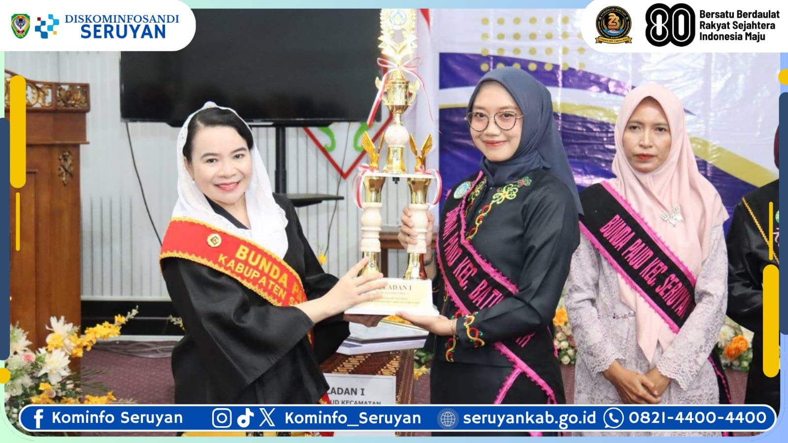 Sebagai bentuk penghargaan atas dedikasi dan kinerja, dalam acara ini juga diumumkan para penerima gelar Bunda PAUD Teladan dan Harapan tingkat kabupaten. Untuk kategori kecamatan, penghargaan Teladan 1 diraih Kecamatan Batu Ampar, Teladan 2 diraih Kecamatan Seruyan Hilir Timur, dan Teladan 3 diberikan kepada Kecamatan Seruyan Raya. Sementara itu, untuk kategori Harapan, posisi Harapan 1 ditempati Kecamatan Seruyan Tengah dan Harapan 2 diraih Kecamatan Seruyan Hulu.