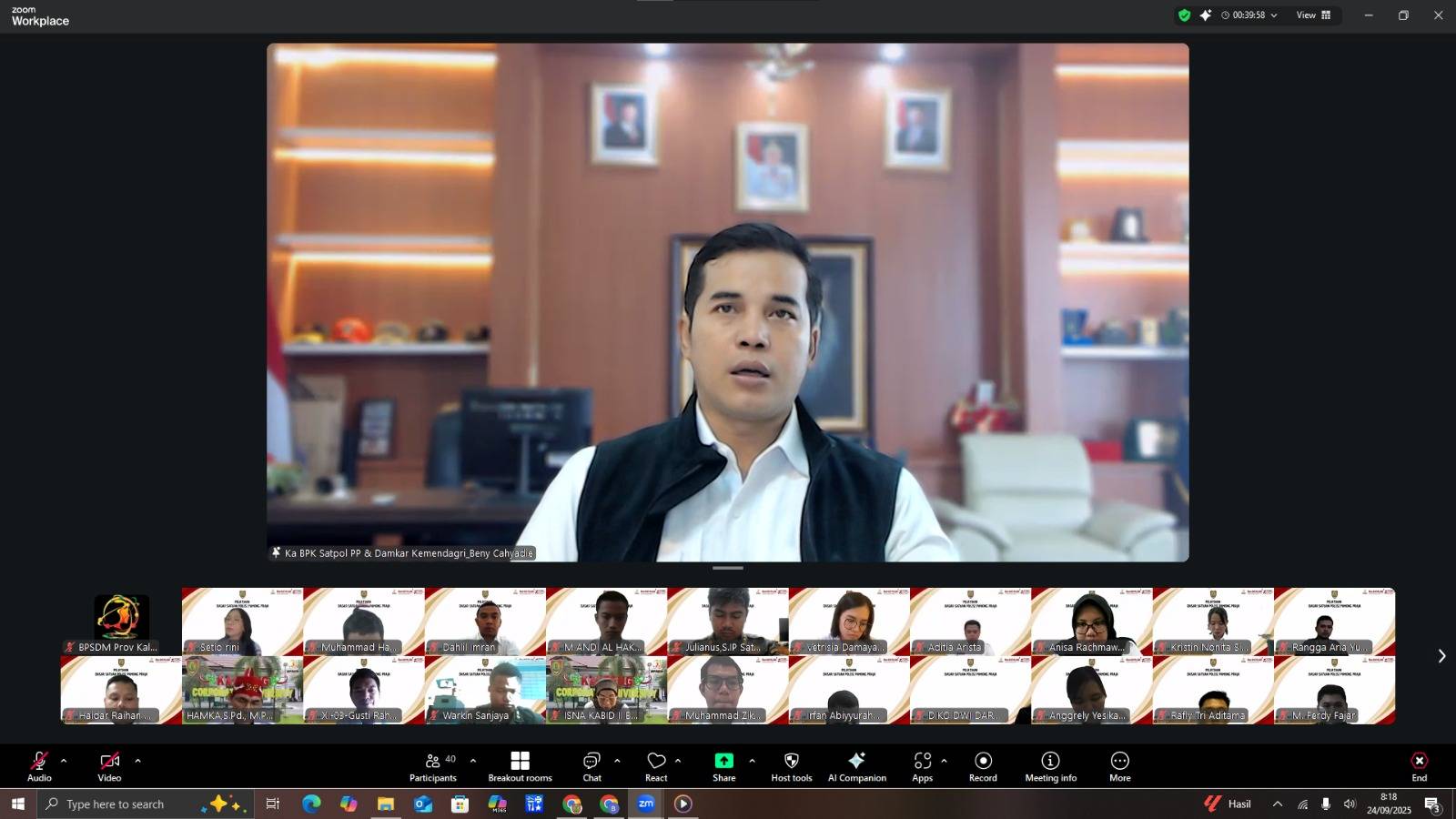 MMCKalteng – Palangka Raya – Pemerintah Provinsi Kalimantan Tengah melalui Badan Pengembangan Sumber Daya Manusia (BPSDM) resmi membuka Pelatihan Dasar Satuan Polisi Pamong Praja (Satpol PP) Tahun 2025 dengan metode blended learning, yang mempertemukan peserta secara luring maupun daring melalui platform Zoom Meeting, Rabu (24/09/25).