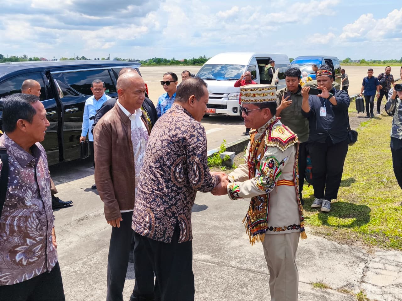 MMCKalteng - Palangka Raya – Kunjungan kerja Menteri Koperasi (Menkop) Republik Indonesia Ferry Joko Juliantono bersama Jaksa Agung Muda Intelijen (JAM-Intel) Republik Indonesia Reda Manthovani, disambut hangat dengan prosesi adat Dayak di Provinsi Kalimantan Tengah. Kedatangan keduanya berlangsung pada Kamis (25/9/2025) di VIP Room Isen Mulang Bandara Tjilik Riwut, Palangka Raya, dengan penyambutan langsung oleh Gubernur Kalimantan Tengah H. Agustiar Sabran.