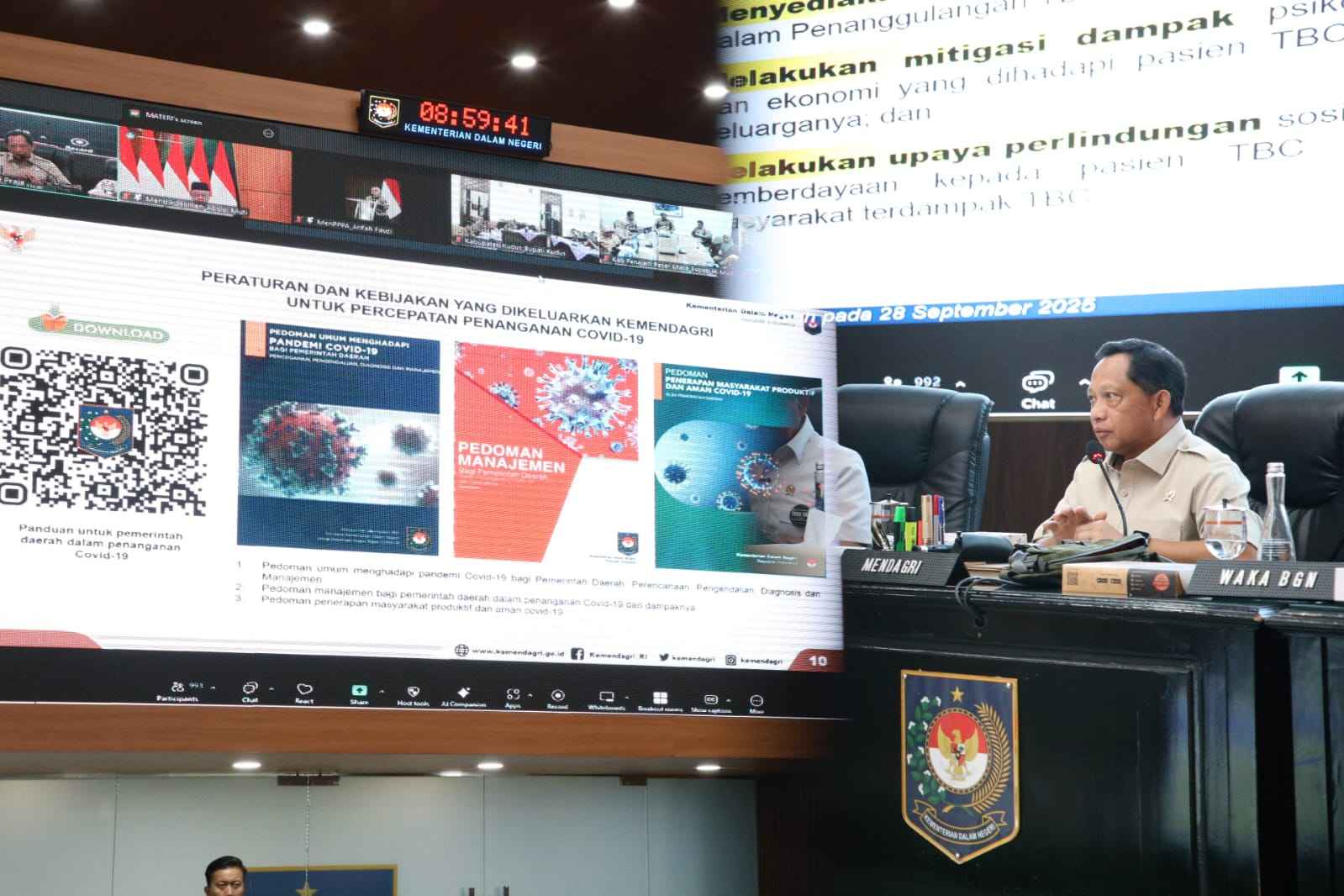 “Ini menjadi atensi yang serius bagi kita, dan mohon ini juga menjadi sinyal bahwa penanganan TB ini menjadi perhatian dan priority dari semua daerah juga,” ujar Mendagri pada Rapat Koordinasi (Rakor) Percepatan Penuntasan TBC dan Pembahasan Makan Bergizi Gratis (MBG) di Gedung Sasana Bhakti Praja (SBP), Kantor Pusat Kementerian Dalam Negeri (Kemendagri), Jakarta, Senin (29/9/2025).