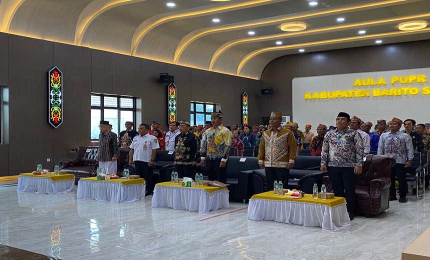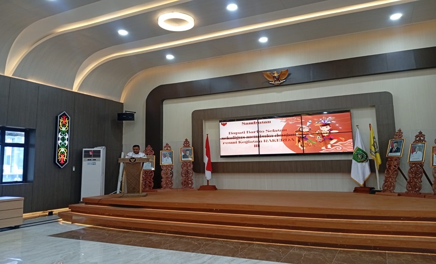MMCKalteng - Buntok - Pemerintah Kabupaten (Pemkab) Barito Selatan (Barsel) meminta umat Hindu Kaharingan di Kabupaten Barito Selatan terus aktif mendukung pembangunan dan kerukunan umat beragama. Pernyataan itu disampaikan oleh Asisten Pemerintahan dan Kesra Setda Kabupaten Barito Selatan, Rahmat Nuryadin saat membacakan sambutan Bupati Barito Selatan, Eddy Raya Samsuri pada pembukaan Rapat Kerja Daerah (Rakerda) III Majelis Daerah Agama Hindu Kaharingan (MD-AHK) Kabupaten Barito Selatan Tahun 2025 yang dilaksanakan di Aula Dinas PUPR Kabupaten Barito Selatan, Rabu (15/10/2025).