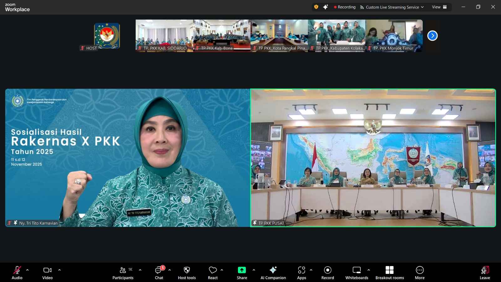 Hal ini ditegaskan Tri saat membuka sekaligus memberikan arahan kepada seluruh TP PKK se-Indonesia secara daring pada acara Sosialisasi Hasil Rakernas X PKK Tahun 2025. Kegiatan ini berlangsung hybrid dari Graha Sabha Wanua Gedung C, Kantor Direktorat Jenderal (Ditjen) Bina Pemerintahan Desa (Pemdes) Kementerian Dalam Negeri (Kemendagri), Jakarta, Selasa (11/11/2025). Selain lewat Zoom Meeting, forum ini juga dapat diikuti melalui kanal YouTube TP PKK Pusat.