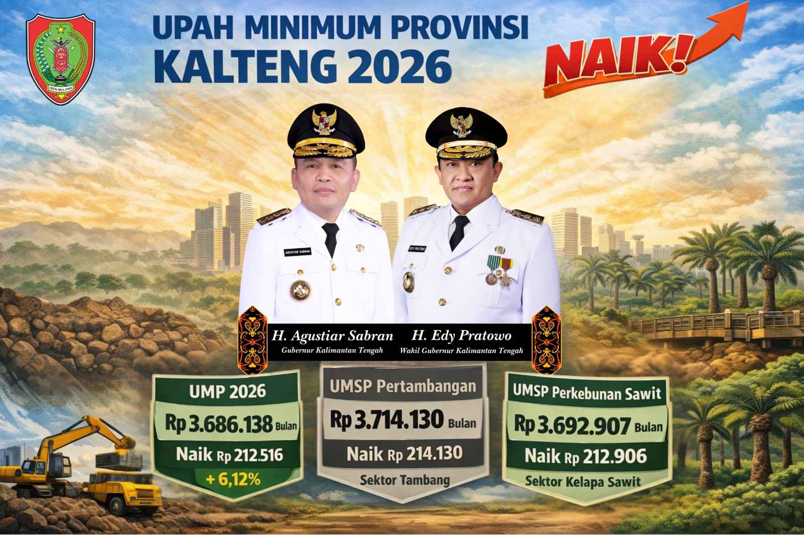 Baca juga : Bappedalitbang Gelar FGD Perencanaan dan Implementasi Pembangunan Ekonomi Hijau dan Pengembangan Riau Science TechnoparkSelain UMP, Pemerintah Provinsi Kalteng juga menetapkan UMSP Tahun 2026 untuk sektor-sektor tertentu. Untuk sektor pertambangan, UMSP ditetapkan sebesar Rp3.714.130 per bulan, naik sebesar Rp214.130 atau 6,12 persen dari tahun sebelumnya. Sementara itu, UMSP sektor perkebunan kelapa sawit ditetapkan sebesar Rp3.692.907 per bulan, meningkat Rp212.906 atau 6,12 persen dibandingkan tahun 2025.