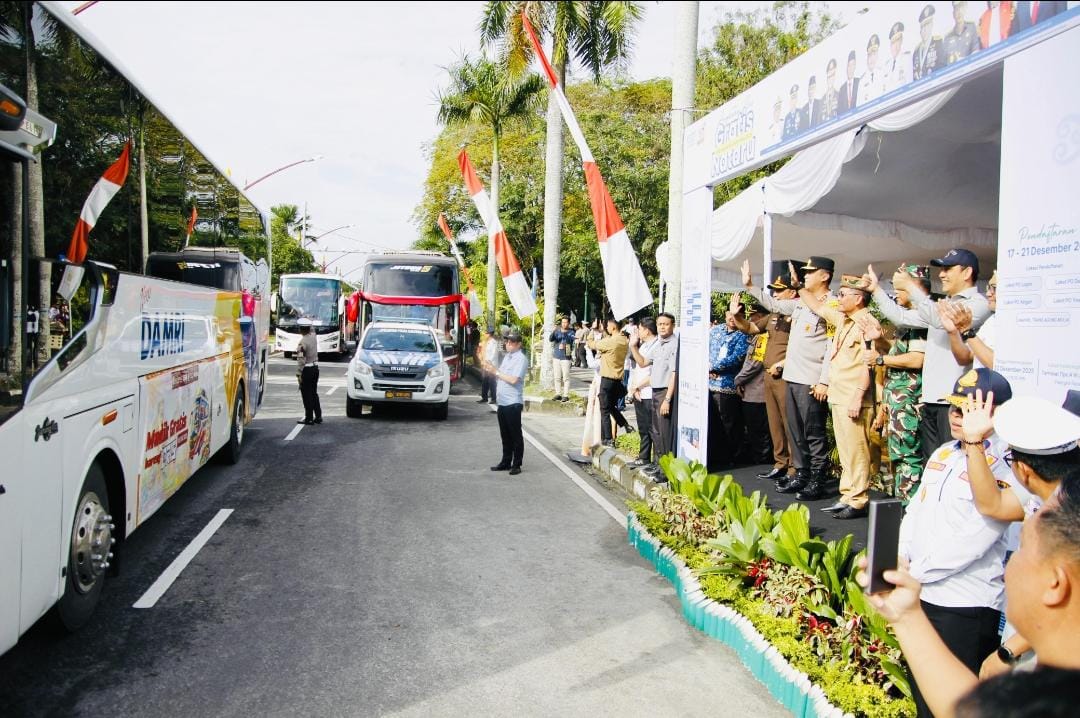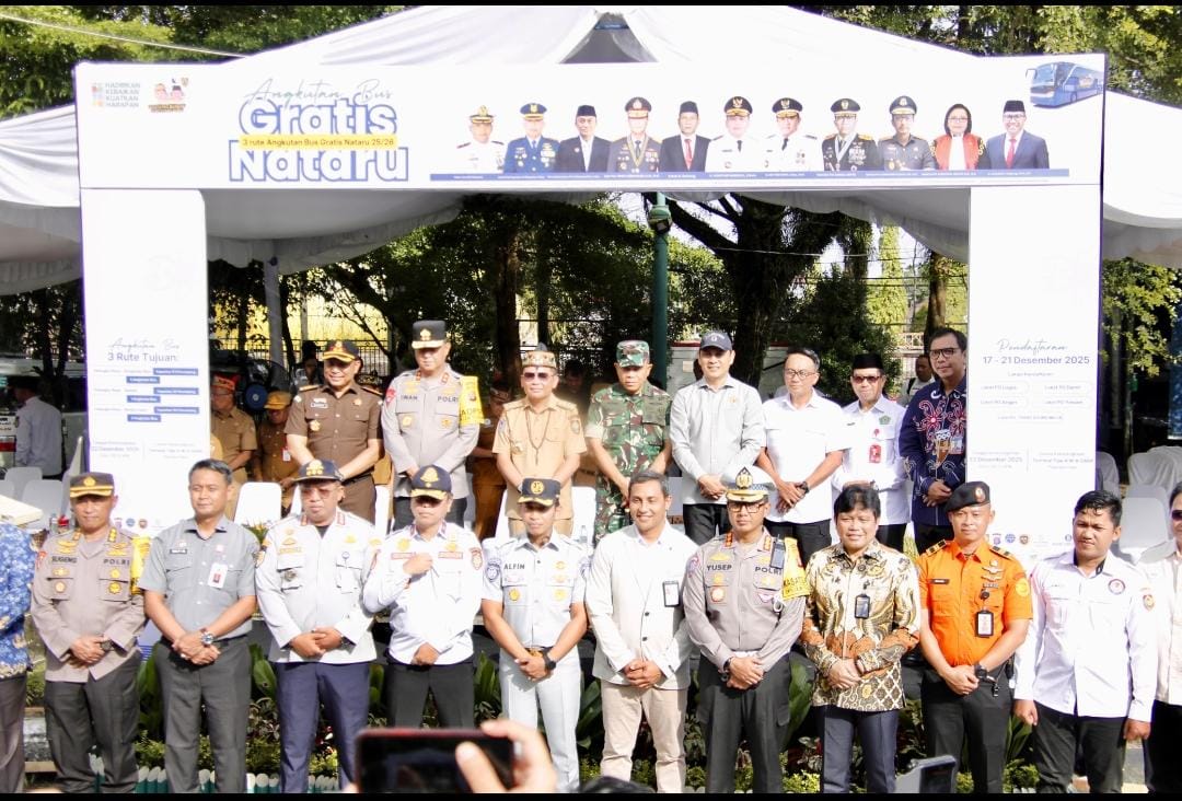MMCKalteng – Palangka Raya – Dalam rangka menyambut Natal dan Tahun Baru (Nataru), Pemerintah Provinsi Kalteng meluncurkan sebuah program layanan Angkutan Bus Gratis bagi masyarakat. Program tersebut dilepas secara resmi oleh Gubernur Kalteng Agustiar Sabran di Pos Terpadu Polisi Bundaran Besar Palangka Raya, Jalan Yos Sudarso, Kota Palangka Raya, Senin (22/12/2025).