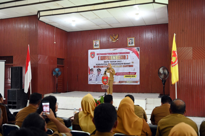 MMCKalteng – Pangkalan Bun – Pemerintah Kabupaten Kotawaringin Barat (Pemkab Kobar) menggelar Musyawarah Perencanaan Pembangunan (Musrenbang) Kecamatan Pangkalan Banteng, Senin (19/1/2026) yang dibuka secara resmi oleh Bupati Hj. Nurhidayah. Kegiatan yang dilaksanakan di Aula Kantor Camat ini sebagai bagian dari tahapan penyusunan Rencana Kerja Pemerintah Daerah (RKPD) Tahun 2027.