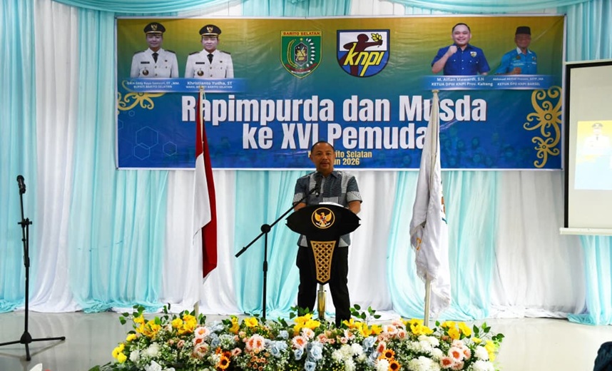 MMCKalteng - Buntok - Rapat Pimpinan Paripurna Daerah (Rapimpurda) dan Musyawarah Daerah (Musda) XVI Komite Nasional Pemuda Indonesia (KNPI) Kabupaten Barito Selatan Tahun 2026 resmi dibuka Bupati Barito Selatan H. Eddy Raya Samsuri di Aula KNPI Kabupaten Barito Selatan, Minggu (8/2/2026).