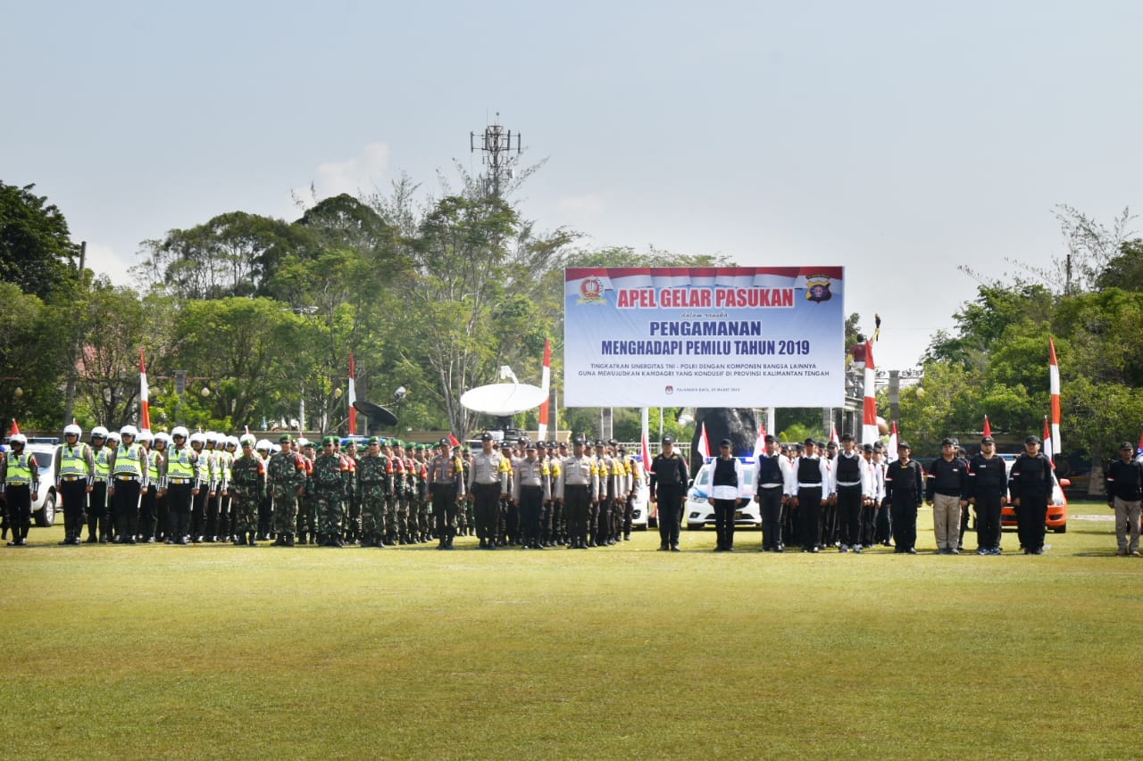 MMCKalteng - Palangka Raya - Apel Gelar Pasukan TNI/POLRI dan Komponen Bangsa lainnya dalam rangka pengamanan menghapi pemilu Tahun 2019 dengan tema "Tingkatkan sinergitas TNI/POLRI dengan komponen bangsa lainnya guna mewujudkan KAMDAGRI yang kondusif di Provinsi Kalimantan Tengah (Kalteng), bertempat di halaman kantor Gubernur Kalteng, Selasa (22/3).