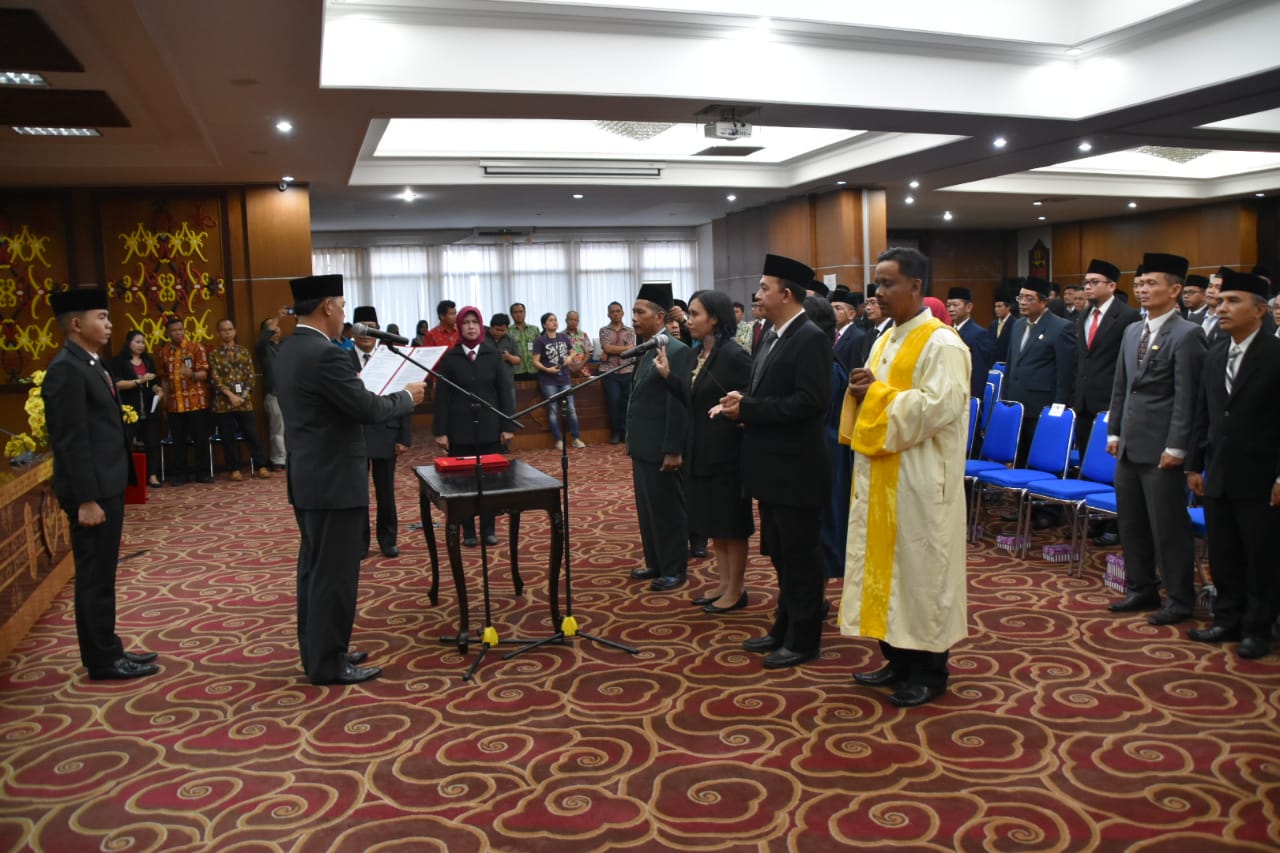 MMCKalteng - Palangka Raya - Pemerintah Provinsi Kalimantan Tengah (Pemprov. Kalteng) menggelar pelantikan dan pengambilan sumpah janji pejabat administrator dan pejabat pengawas (eselon III dan eselon IV) di lingkungan Pemprov. Kalteng, bertempat di Aula Eka Hapakat, Kantor Gubernur Kalteng, Kamis (27/6).