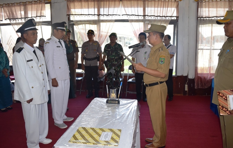 MMCKalteng - Bupati Kapuas Ir Ben Brahim S Bahat MM MT mengambil sumpah/janji dan melantik dua Kepala Desa di Kecamatan Kapuas Murung, Rabu (7/2) pagi, di Aula Kantor Camat. Adapun Kepala Desa yang dilantik tersebut yaitu Desa Sumber Mulya dijabat oleh Apipudin dan Kepala Desa Antar Waktu Desa Bina Karya dijabat oleh Rahmadi.