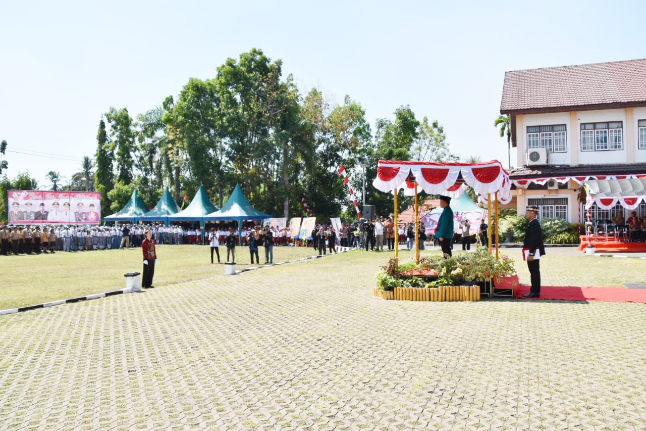 Gubernur Kalteng H. Sugianto Sabran beserta Isteri Yulistra Ivo Sugianto Sabran hadiri Upacara Peringatan Hari Jadi ke-17 Kabupaten Barito Timur, yang digelar di halaman kantor Bupati Barito Timur, Sabtu (3/8/2019).
