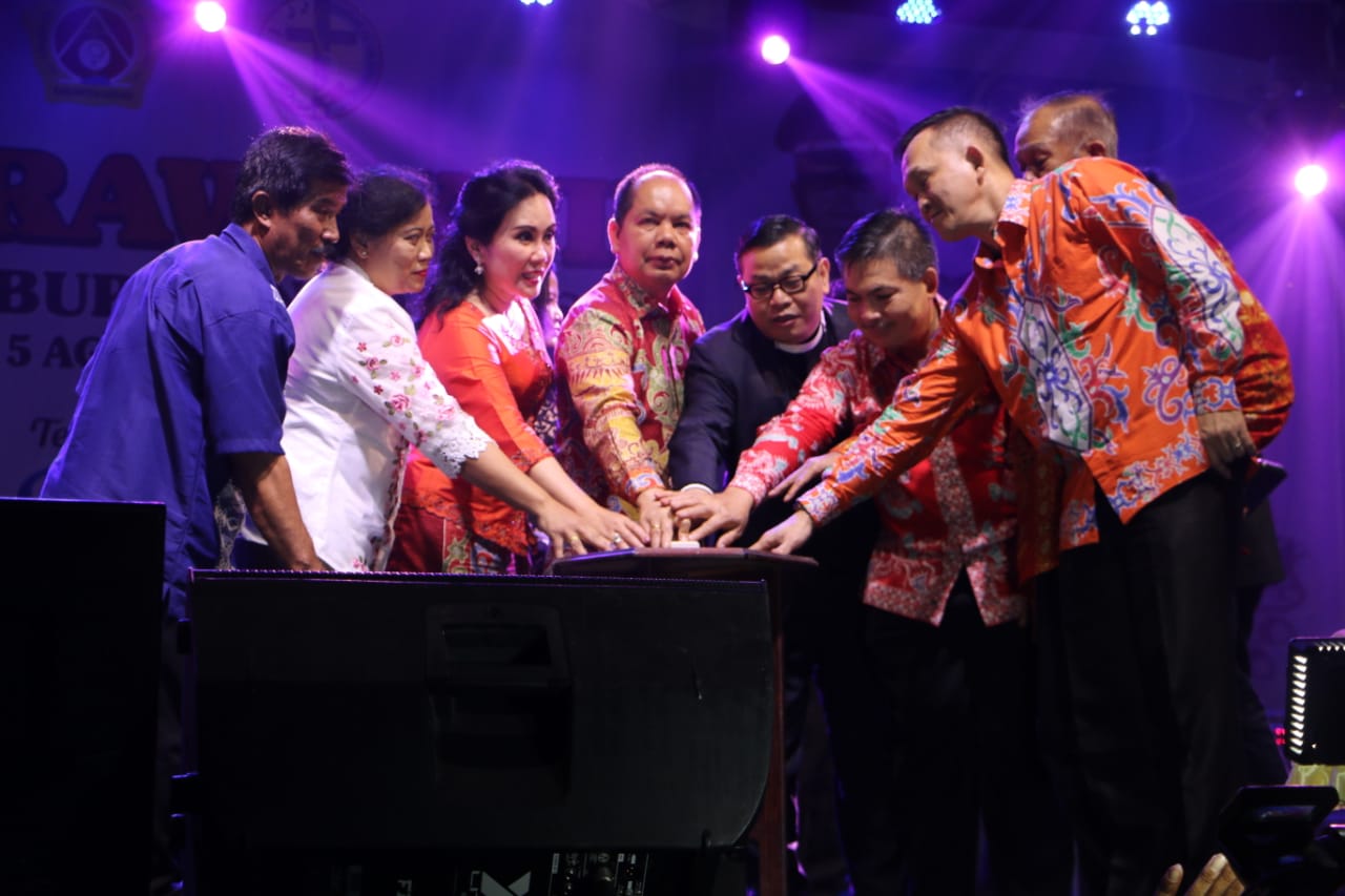 MMCKalteng – Kapuas - Pesta Paduan Suara Gerejawi (Pesparawi) ke XVII Tahun 2019 Tingkat Kabupaten Kapuas, secara resmi dibuka oleh Bupati Kapuas Ir Ben Brahim S Bahat MM.MT di Desa Timpah Kecamatan Timpah Kabupaten Kapuas, Minggu (11/7/2019) malam. Pembukaan ini ditandai dengan penekanan tombol sirene oleh Bupati Kapuas didampingi Isteri Ny Ary Egahni Ben Bahat, SH, Ketua Umum Sinode GKE Pdt DR. Wardinan S Lidim M.Th, Ketua LPPD Kabupaten Kapuas Drs Septedi Msi dan Ketua Umum Pesparawi 2019 Batu Panahan, SH yang juga Camat Timpah.