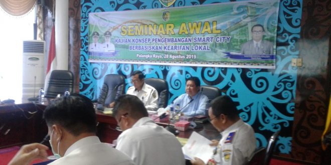 MMCKalteng, Palangka Raya – Pemerintah Kota Palangka Raya melalui Badan Penelitian dan Pengembangan Kota Palangka Raya bersama-sama dengan Tim Peneliti Lembaga Penelitian dan Pengabdian kepada Masyarakat (LPPM) Universitas Palangka Raya melaksanakan seminar awal tentang konsep pengembangan smart city berbasis kearifan lokal di Ruang Rapat Peteng Karuhei I Kantor Walikota Palangka Raya, Rabu (28/8/2019). Plt. Asisten II Bidang Ekonomi, Pembangunan dan Kesra, Ikhwanudin dalam sambutannya mengatakan sangat mendukung sekali dengan adanya kajian yang dilakukan Pemerintah Kota Palangka Raya bersama-sama dengan tim peneliti dari Universitas Palangka Raya dan hasilnya nanti dapat bermanfaat bagi pembangunan dan pengembangan Kota Palangka Raya. Ariesta Lestari, S.Kom, M.Cs anggota tim peneliti dari LPPM Universitas Palangka Raya dalam paparannya mengatakan kota cerdas atau smart city adalah sebuah kota yang dapat mengatur sumber dayanya (alam dan manusia) secara efektif dan efisien dalam mencapai pembangunan berkelanjutan dan kenyamanan dalam berkehidupan. Sedangkan maksud dan tujuan dari penelitian ini bermaksud menyediakan arah kebijakan pengembangan smart city yang sesuai dengan permasalahan yang ada di Kota Palangka Raya dan sesuai dengan visi misi Walikota Palangka Raya sedangkan tujuannya adalah melakukan identifikasi kondisi eksisting pemanfaatan Teknologi Informasi dan Komunikasi (TIK) serta analisis terhadap potensi pemanfaatan TIK di Kota Palangka Raya. Dalam melakukan analisis kearifan lokal yang berkembang di Kota Palangka Raya terkait dengan pemanfaatan TIK, menyelaraskan penerapan smart city dengan business process Pemerintah Kota Palangka Raya, SOPD lainnya, instansi terkait serta dapat berakselerasi dalam percepatan transformasi birokrasi dan menyusun perencanaan asitektur smart city yang berbasis kearifan lokal yang bisa diterapkan di Kota Palangka Raya dan perencanaan roadmap program kerja 5 tahun guna mendukung penyusunan anggaran APBD. (MC Isen Mulang). |
