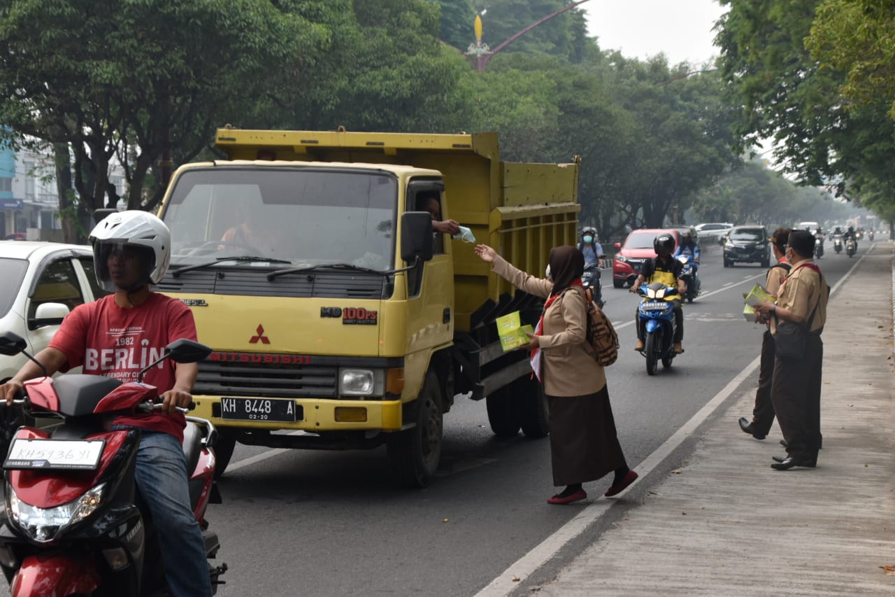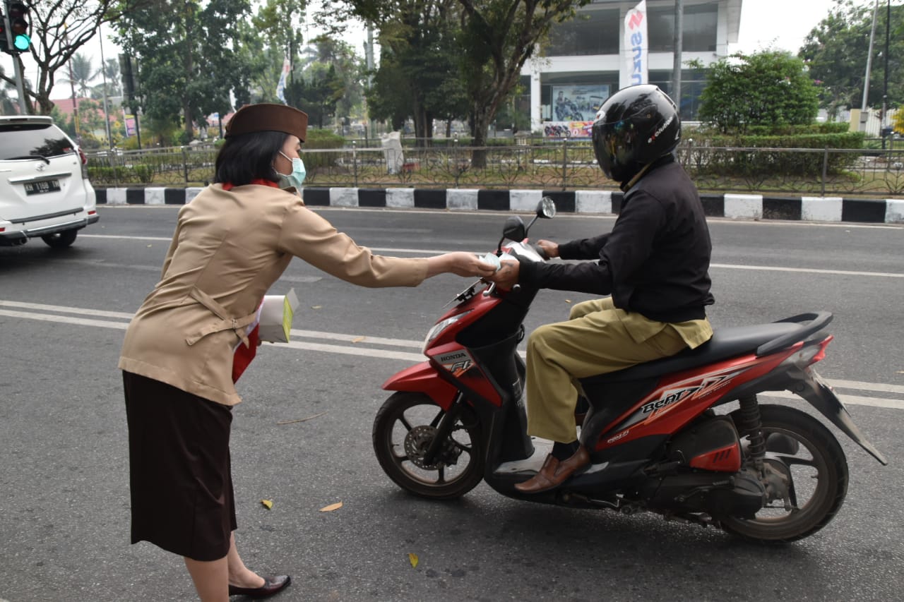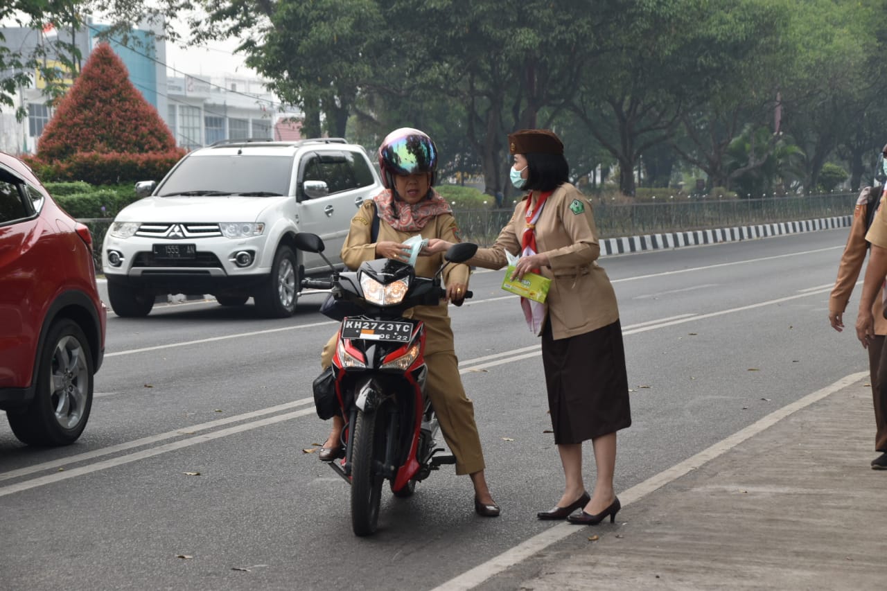 MMCKalteng - Palangka Raya - Dinas Kesehatan (Dinkes) Provinsi Kalimantan Tengah (Prov. Kalteng) melalui Satuan Karya Bakti Husada (SBH) daerah Kalteng membagikan masker sebanyak 1.500 buah kepada masyarakat di sekitaran Lampu Merah, Jalan Imam Bonjol, Kota Palangka Raya, Selasa (17/9/2019).