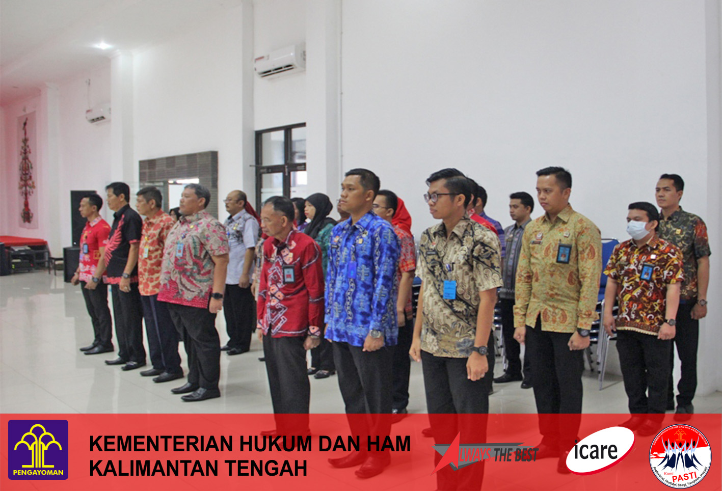 Palangka Raya (02/10/19) - Dalam memperingati Hari Batik Nasional Tahun 2019 Kantor Wilayah Kementerian Hukum dan Hak Asasi Manusia Kalimantan Tengah mengenakan pakaian batik, terlihat pada pelaksanaan apel pagi di Aula Besar Kanwil Kemenkumham Kalteng lantai 2. Pada kesempatan ini, Kepala Bidang Pelayanan Tahanan, Kesehatan, Rehabilitasi Pengelolaan Benda Sitaan, Barang Rampasan Negara, Dan Keamanan (Arief Gunawan) sebagai Pembina Apel pagi, didampingi oleh Kepala Divisi Administrasi (Sucipto), Kepala Divisi Pelayanan Hukum dan HAM (Cahyani), dan Kepala Divisi Keimigrasian (Ignatius Purwanto), serta diikuti seluruh Pejabat Administrator, Pengawas, JFT dan JFU di Kanwil Kemenkumham Kalteng.