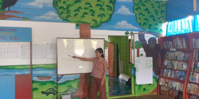 MMCKalteng, Palangka Raya – Saat Jurnalis Kominfo Palangka Raya menginjakkan kaki di rumah taman baca dan belajar “Ransel Buku”, Kamis (3/10/2019), anak- anak sedang asyik belajar Bahasa Inggris, lelah kami terasa hilang setelah melihat antusias anak- anak belajar. Rumah baca dan belajar yang dinamai ‘RANSEL BUKU’ tepat berada di Tepi Sungai Kahayan Kelurahan Petuk Ketimpun Kecamatan Jekan Raya Kota Palangka Raya.