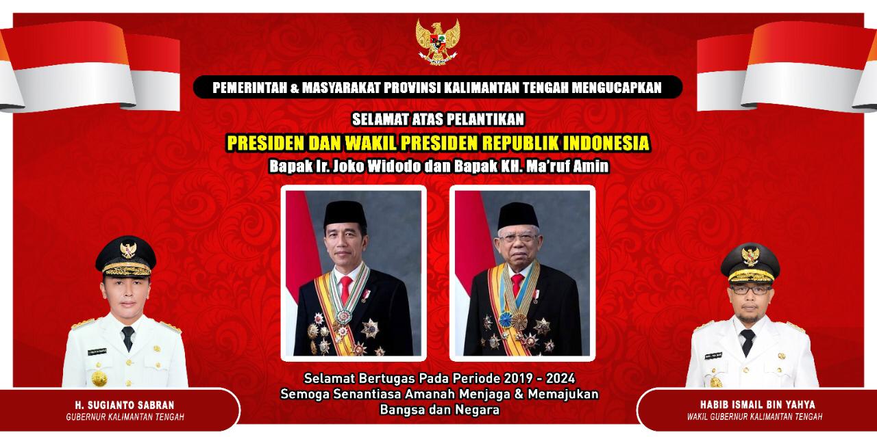 MMCKalteng - Palangka Raya - Gubernur Kalimantan Tengah (Kalteng) H. Sugianto Sabran dan Wakil Gubernur Kalteng Habib Ismail Bin Yahya mengucapkan selamat atas dilantiknya Presiden Joko Widodo dan K.H. Ma`ruf Amin yang resmi mengemban jabatan sebagai Presiden dan Wakil Presiden RI periode 2019-2024.