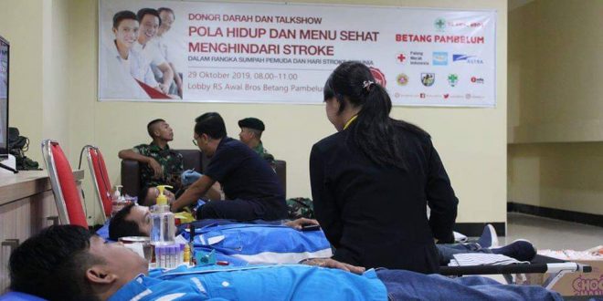 MMCkalteng, Palangka Raya – Rumah Sakit Awal Bros Betang Pambelum mengadakan kegiatan donor darah dan talkshow pola hidup dan menu sehat menghindari stroke, Selasa (29/10/2019).