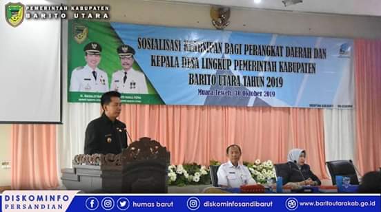 MMCKalteng - Muara Teweh - Guna menjamin pengelolaan kearsipan pemerintahan yang baik, Pemerintah Kabupaten Barito Utara melalui Dinas Kearsipan dan Perpustakaan menggelar Acara Sosialisasi Kearsipan Bagi Perangkat Daerah dan Kepala Desa Lingkup Pemerintah Kabupaten Barito Utara Tahun 2019 di Aula Bappedalitbang Jl. A. Yani Muara Teweh. Acara dibuka oleh Bupati Barito Utara H. Nadalsyah didampingi Wakil Bupati Barito Utara, Sugianto Panala Putra, Ketua DPRD Ir. Hj. Mery Rukaini, MIP, Sekretaris Daerah, Ir. H. Jainal Abidin, M. AP, dan dihadiri oleh Staf Ahli Bupati, Kepala Perangkat Daerah, perwakilan FKPD serta para undangan peserta sosialisasi lingkup Pemerintah Kabupaten Barito Utara.