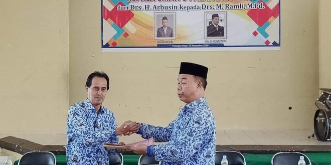 MMCKalteng, Palangka Raya – Jabatan Kepala SMAN 5 Palangka Raya berganti, Senin (11/11/2019). Sekolah yang terletak di Jalan Tingang ini sebelumnya dijabat Arbusin.
