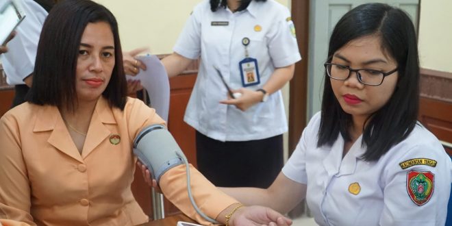Kali ini pemeriksaan cek tekanan darah dan cek gula darah gratis bagi 50 ibu pendaftar pertama yang dibantu oleh 2 orang petugas kesehatan dari RS. Doris Sylvanus. (MC Isen Mulang)