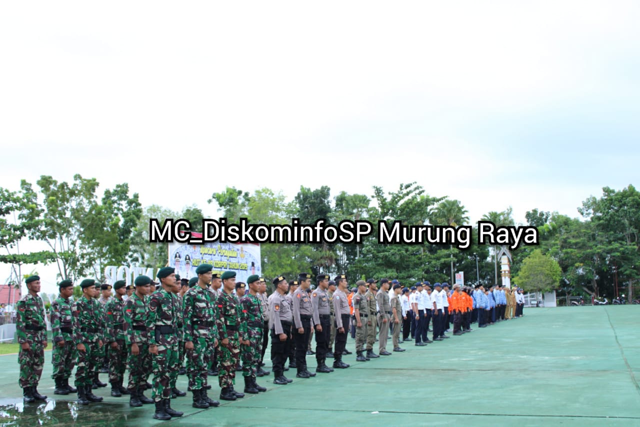 MC_Murung Raya: Upacara peringatan HUT Ke-48 korps pegawai Republik Indonesia (KORPRI) melibatkan semua unsur TNI, POLRI pejabat Eselon IV, III, II dan pegawai fungsional umum, Forkominda serta pegawai kontrak dilingkup Murung Raya berjalan dengan khidmat hingga usai meskipun diguyur hujan lebat.