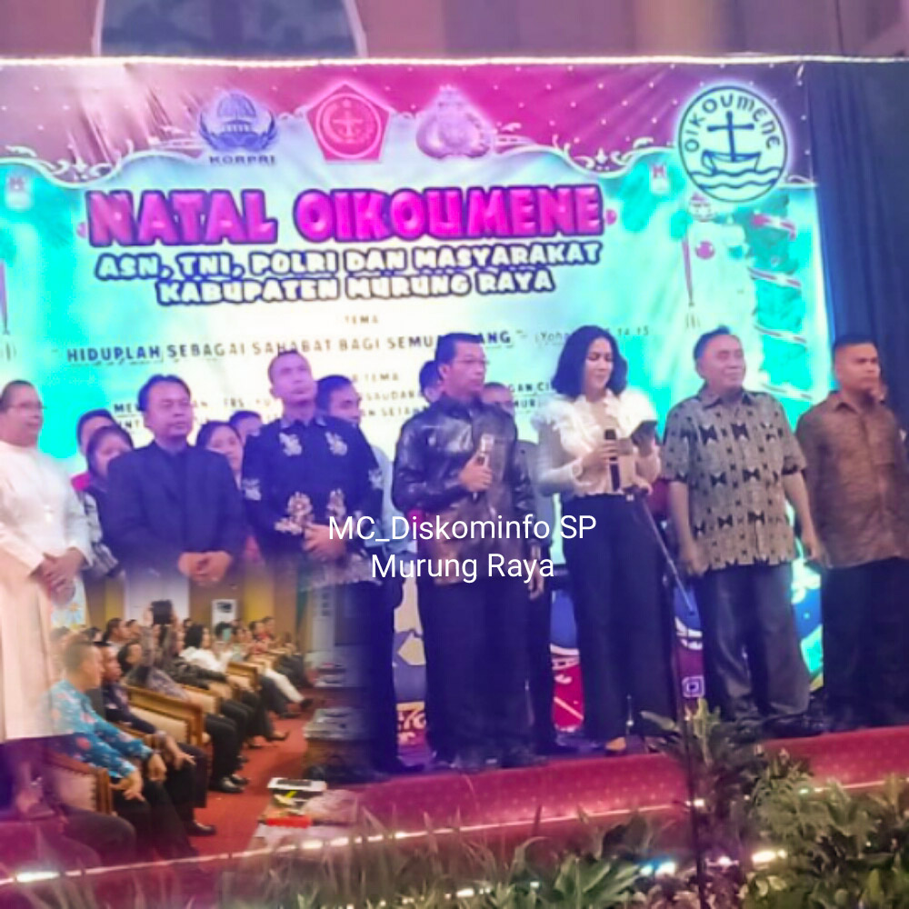 MC_Murung Raya – Perayaan Natal Oikumene yang digelar Pemerintah Kabupaten (Pemkab) Murung Raya (Mura) bertempat di Gereja Christian Center Elioteria, Kota Puruk Cahu. Minggu (01/12) malam.