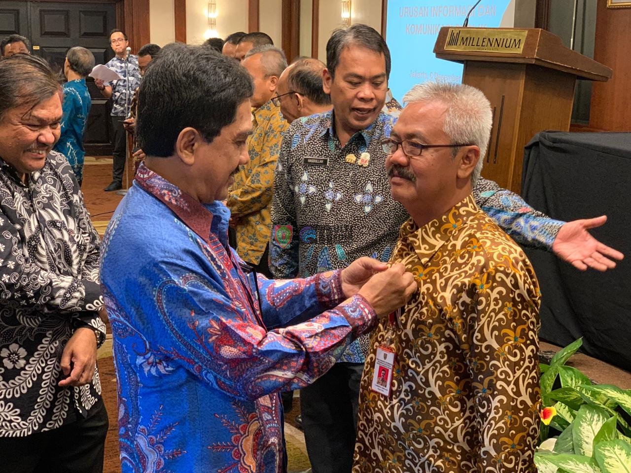 Sebagai bentuk komitmen dalam penyebarluasan informasi dan komunikasi publik, semua kepala Dinas Kominfo se Indonesia disematkan PIN Government Public relations. Dengan pin tersebut diharapkan mampu membangkitkan motivasi, inovasi dan kreasi dalam penyebaran dan pengembangan informasi dan komunikasi. (AGS/Foto:HBA)