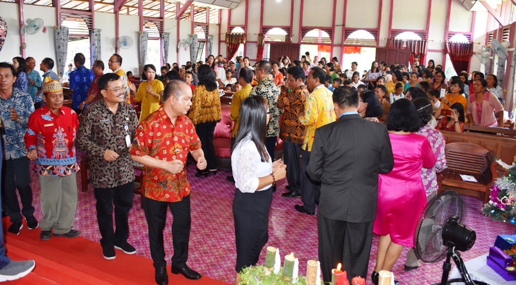 Mengawali kegiatan safari Natal tahun ini Bupati Kapuas Ben Brahim S Bahat bersama rombongan dalam satu hari yang sama, mengikuti di tiga tempat perayaan natal diantaranya Ibadah dan perayaan natal di Gereja Gloria Desa Pulau Kaladan Kecamatan Mantangai, Gereja GKE Tampunan Sinta Desa Sei Dusun dan di Gereja Imanuel Desa Saka Mangkahai Kecamatan Kapuas Barat, Kamis (12/12/19).