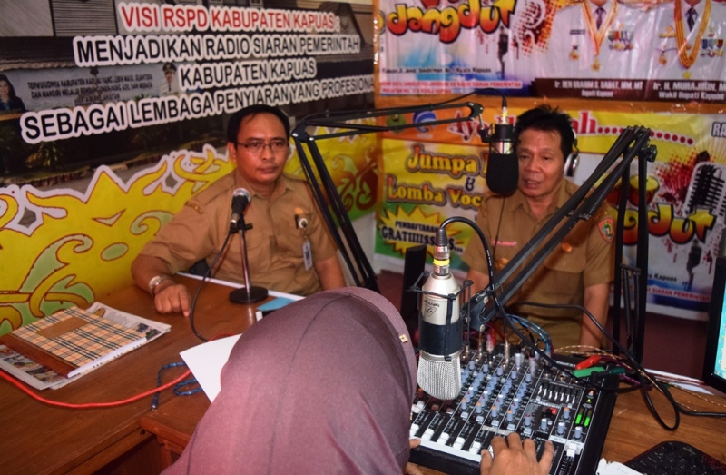 MMCKalteng - Radio Siaran Pemerintah Daerah (RSPD) Kabupaten Kapuas yang mengudara pada frekuensi 91,4 FM dikejutkan dengan kedatangan Pejabat Sementara Bupati Kapuas Ermal Subhan ST MT, Selasa (27/2) siang. Kehadiran orang nomor satu di Kapuas pada studio radio milik Pemerintah Kabupaten Kapuas ini disambut langsung Sekretaris Diskominfo beserta sejumlah angkasawan serta puluhan fans radio yang bermarkas di Jalan DI Panjaitan Kuala Kapuas.