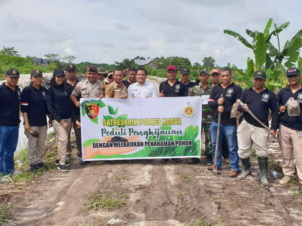 Peroleh Bibit Eucalyptus Dari DLH Kobar, Kelurahan Madurejo bersama Satreskrim Polres Kobar Lakukan Aksi Peduli Penghijauan